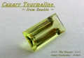 ザンビア産カナリートルマリンルース!!バゲットシェイプ(角のある長方形)は少々珍しい形です。少しグリーン味を感じさせるような綺麗なカナリーイエローです。多少のインクルージョンがありますので「アクセサリールース」としてのご紹介です。カット研磨の仕上がりは高品質です。とてもテリのいいルースです。