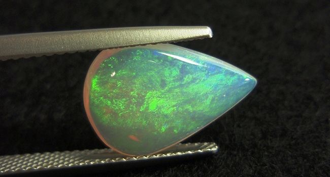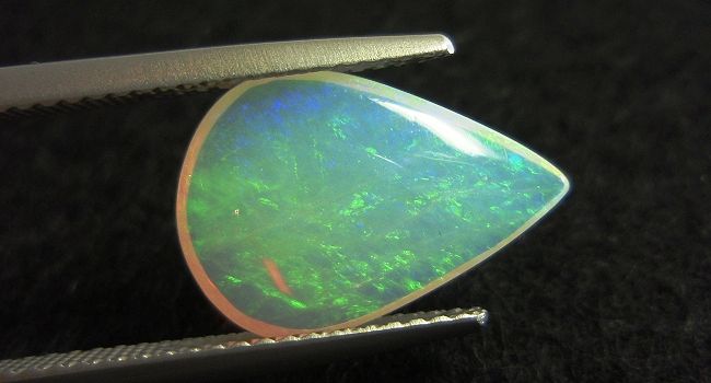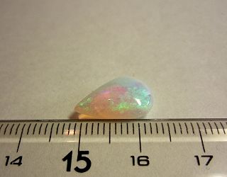 約1.5cmの程よい大きさのペアシェイプカット。グリーン系の遊色効果による深みのあるルースです。
